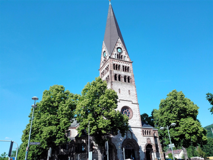 Nuestro recorrido por la ciudad de Ettlingen lo inicia Don Viajón fuera de las murallas, en la iglesia del Sagrado Corazón de Jesús que es la edificación más alta de la ciudad. Es un templo católico en estilo neorrománico que data de principios del siglo XX y cuya torre de 70 mts es el más alto mirador del valle del Alb.