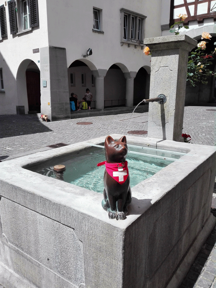 También hay una fuente barroca con agua cristalina y coloridas flores. Además, como en toda Suiza, el agua de las fuentes es potable y puedes llenar tu botella para ir refrescándote durante el recorrido turístico.