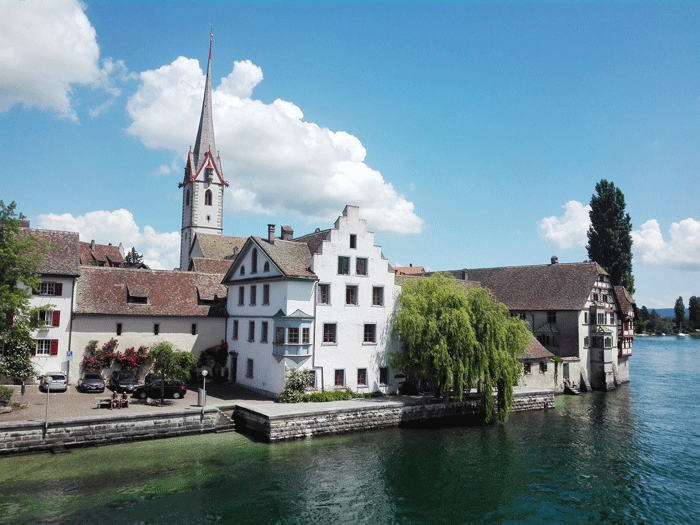 Stein am Rhein está ubicada a 413 msnm en el cantón de Schaffhausen al norte de la Confederación Helvética a orillas del cristalino Rin que sirve de frontera con Alemania. Tiene una población aproximada de 3.600 habitantes y en las últimas décadas se ha convertido en un fascinante destino en medio de la ruta turística que une las cataratas del rio Rin con el lago Constanza.