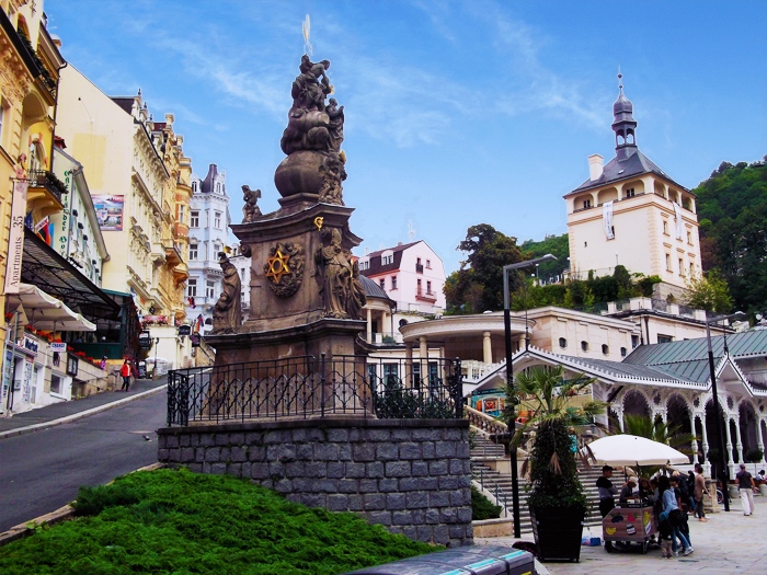 Durante el recorrido por el Paseo del río Teplá, Don Viajón se deleitó con la hermosa y colorida arquitectura renacentista de las edificaciones con floridos jardines. Probo el agua mineral de cada una de las fuentes que encontró en las columnatas del Parque, del Molino y del Mercado. En la columna de la Santísima Trinidad se sentó a degustar las tradicionales obleas y a observa la belleza del centro histórico.